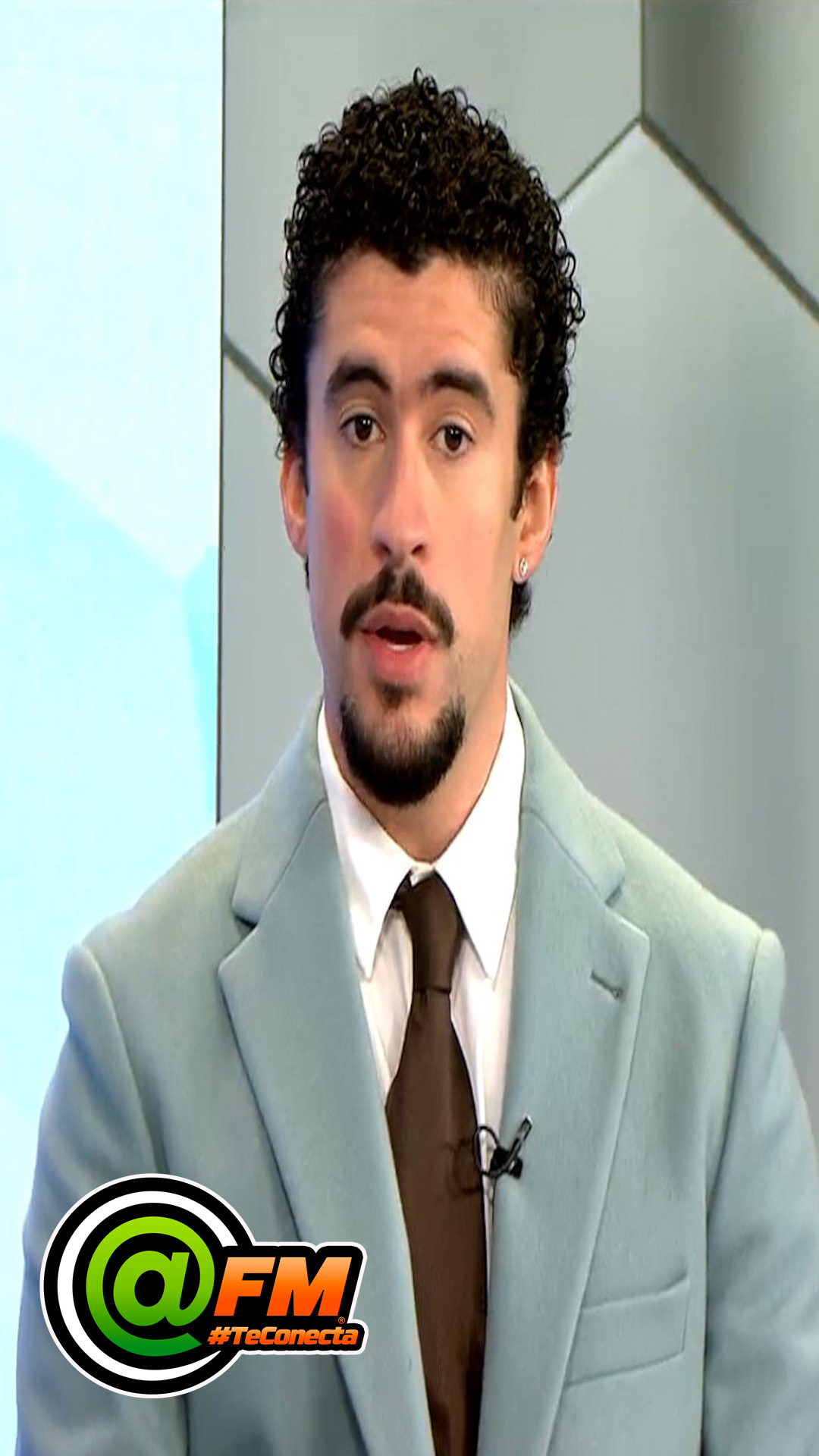 Luciendo un traje gris, corbata café y camisa blanca, Bad Bunny inició su intervención con un saludo al público: “Hola, Puerto Rico. Mi nombre es Benito y estoy aquí con el equipo de NotiCentro”.